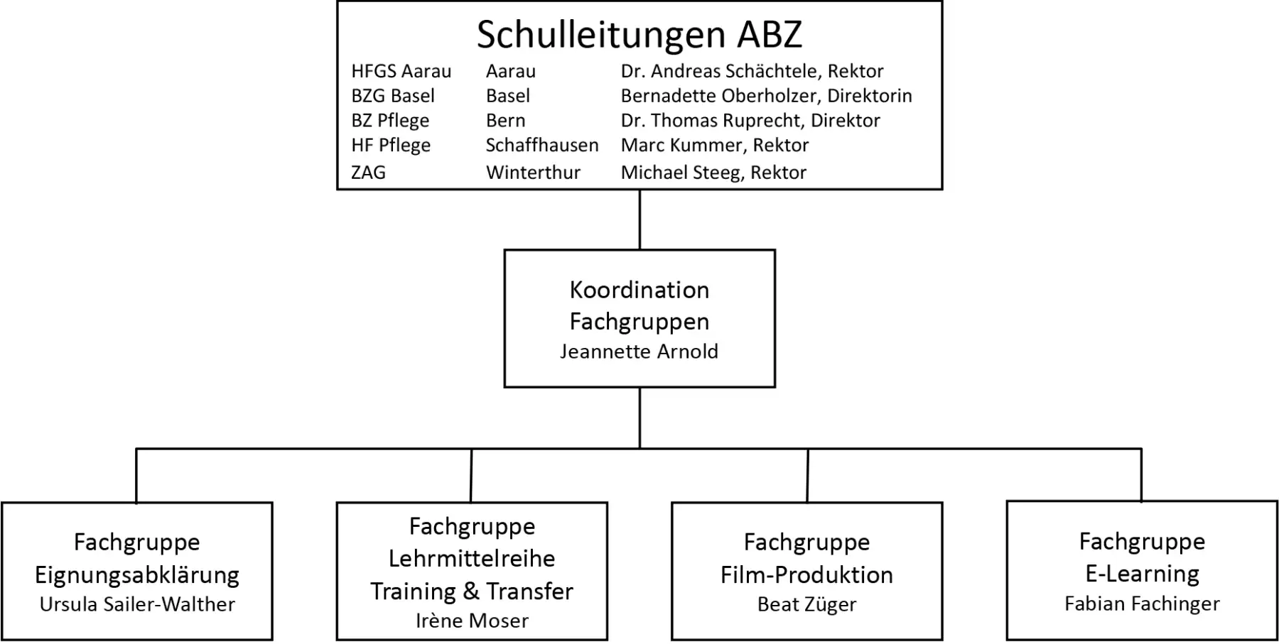 Ziel ist es, qualitativ hochstehende und verkaufsfähige Filmproduktionen zu produzieren, welche die Handlungsabläufe der jeweiligen TT Arbeitshefte optimal ergänzen. Die Fachgruppe Film-Produktion setzt sich zusammen aus Vertretern der einzelnen Bildungszentren der HF Pflege ABZ Verbund.
